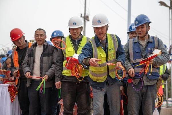 2月5日,在重庆市江津区重庆枢纽港产业园先进机电装备和物流产业园项目建设现场,工友们进行趣味套圈游戏。当日,中建二局联合重庆市江津区总工会在重庆枢纽港产业园先进机电装备和物流产业园项目工地举行游园活动。活动以“情系建设者 欢喜迎新年”为主题,包含写春联、投壶、拔河比赛等活动内容,让工友们感受节日温暖。新华社记者 陈诚/摄