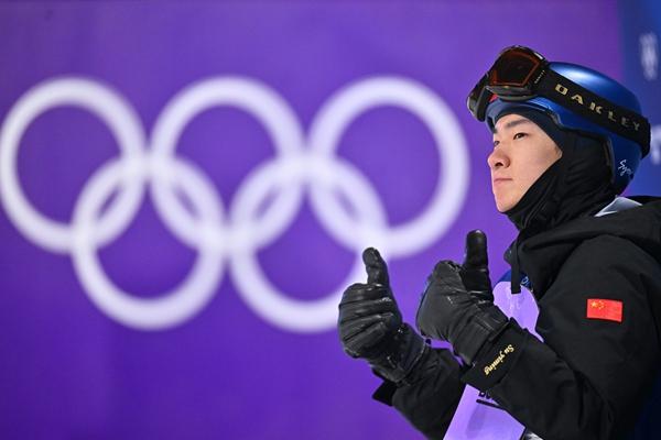 当地时间2月7日,在意大利利维尼奥举行的米兰-科尔蒂纳冬奥会单板滑雪项目男子大跳台决赛中,中国选手苏翊鸣获得铜牌。新华社记者 张宏祥/摄