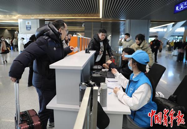 2月2日,2026年春运正式启幕,全国各级团组织动员13.7万余名青年志愿者在火车站、飞机场、道路客运站、地铁等重点场所为旅客提供形式多样的志愿服务。