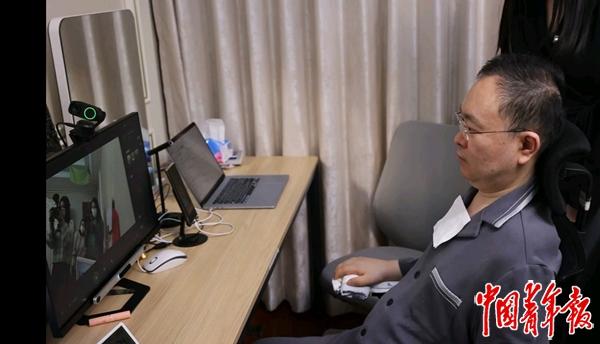 只有眼睛和大脑,还顽强地工作着。他靠眼球的转动和外界沟通,每天用眼控仪工作超过10个小时。