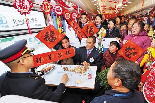 穿行于秦岭深处、横跨陕甘川三省的6063/6064次公益慢火车上年味十足。已开通68载的这列慢火车,始终坚持逢站必停、票价亲民,是沿线山区群众出行的重要交通线,被乡亲们亲切称作“秦岭小慢慢”。刘松霖/摄