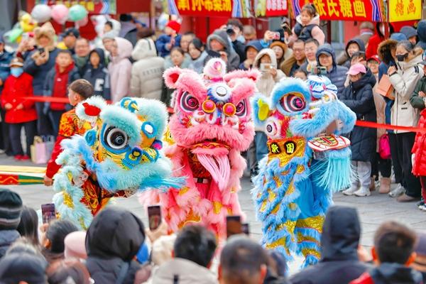 2月15日,游客在天津古文化街观看民俗表演。春节将至,天津古文化街热闹非凡。人们在这里品味年味,感受传统民俗文化魅力,喜迎马年春节。杜鹏辉/摄(新华社发)
