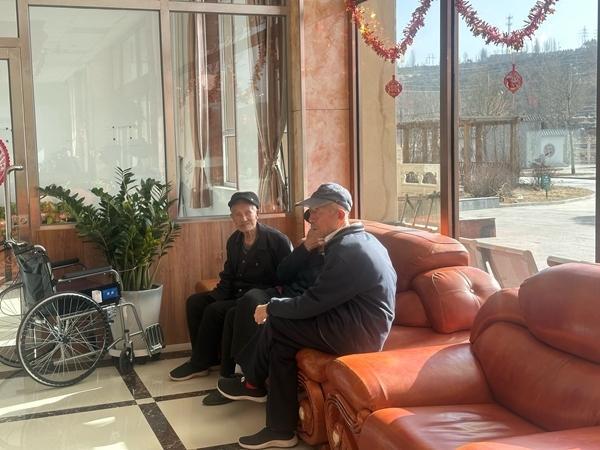 2月23日,早春的风还凛冽,内蒙古自治区呼和浩特市一个县城的养老院里,吃过早饭的老人聚在院子里太阳能照到的地方,有人在聊春节请假出去吃的席,还有人小跑追上来向别家儿女反映情况:“你给你爹买来的年货全让别人偷吃了。”