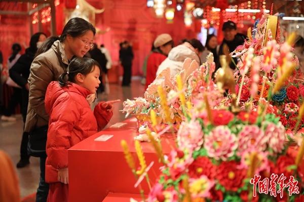 该展览从中华民族传统历法、生肖文化、粮食观和灯彩民俗等主题入手,串联起与春节相关的、来自全国各地的百余项非物质文化遗产代表性项目。元宵佳节将近,不少市民游客来到节日氛围浓郁的博物馆和美术馆,赏精美展品、看民俗表演、逛非遗市集、尝各地美食。中青报·中青网记者 孔斯琪/摄