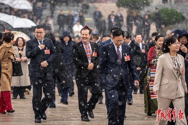 3月4日,北京,人民大会堂外,十四届全国人大四次会议预备会议后,代表们走出会场。中青报·中青网记者 李隽辉/摄