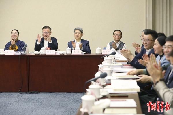3月6日下午,北京会议中心,政协教育界别小组讨论会,委员们在鼓掌。中青报·中青网记者 陈剑/摄