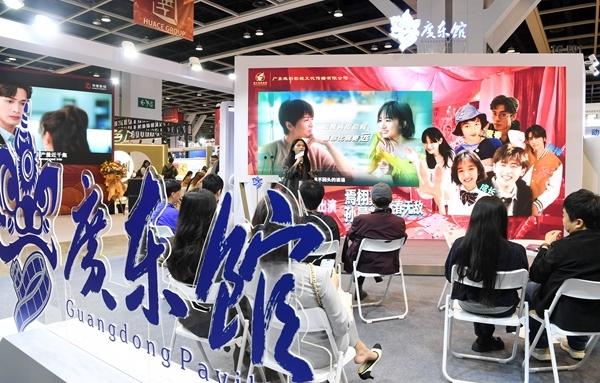 3月17日,参展商在香港会展中心广东馆推介影视产品。由香港贸易发展局主办的第30届香港国际影视展,17日至20日在香港会展中心举行,吸引来自超过30个国家及地区的逾790家展商参与。新华社记者 陈铎/摄