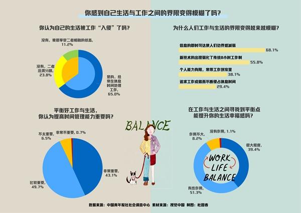 “父母那一辈人,下班回家不用再想工作,可以专注忙活自己的事情。现在社会节奏加快了,社交媒体的普及让人们工作不受时间和空间的限制,不知不觉,工作与生活的界限变得越来越模糊了。”刘慧说。