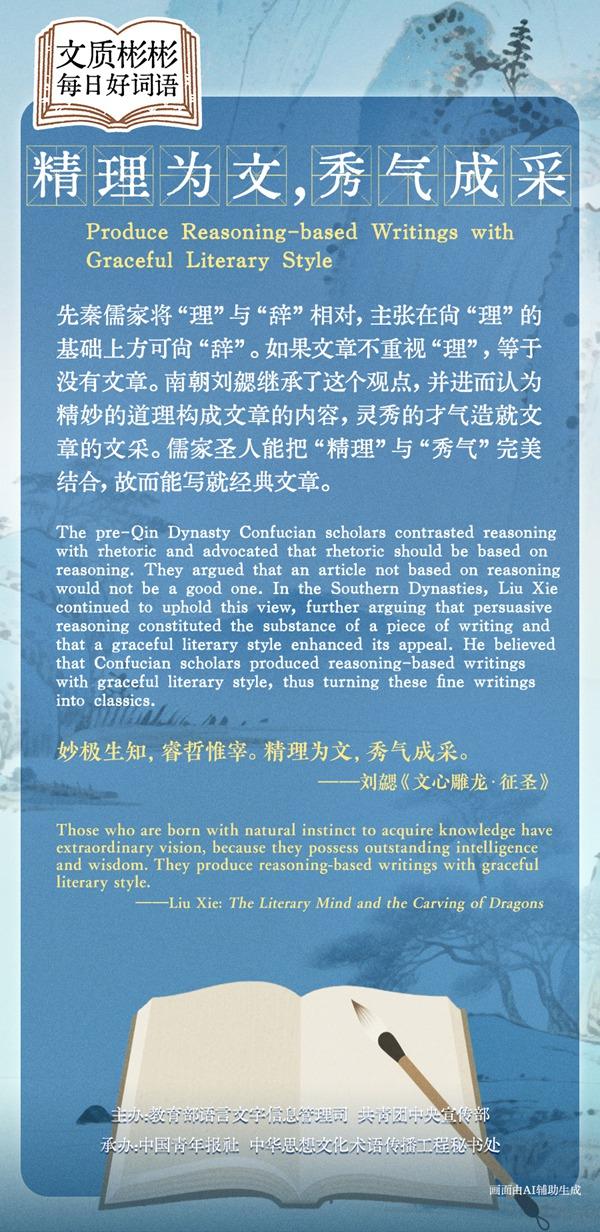 Those who are born with natural instinct to acquire knowledge have extraordinary vision, because they possess outstanding intelligence and wisdom. They produce reasoning -based writings with graceful literary style. (Liu Xie: The Literary Mind and the Carving of Dragons)