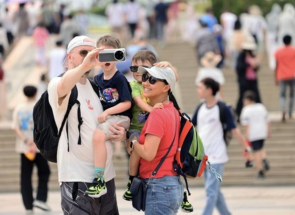 4月6日,游客在海南省三亚南山文化旅游区游览拍照。文化和旅游部4月7日公布2026年清明节假期文化和旅游市场情况。经文化和旅游部数据中心测算,假期3天,全国国内出游1.35亿人次,同比增长6.8%;国内出游总花费613.67亿元,同比增长6.6%。陈文武/摄(新华社发)
