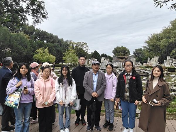 从万方安和殿烫样到复原的十二生肖水力钟,从工艺精绝的马首铜像到温润精琢的汉白玉石柱,几大文物展览让同学们想象昔日盛景,感知中西文化汇通融合、兼采众长。当他们走过“坐石临流”,远眺“蓬岛瑶台”,驻足于“谐奇趣”“海晏堂”“大水法”等遗址前,圆明园的山形水系在实地探寻中逐渐清晰。大家对照《圆明园四十景图咏》踏访遗址,讨论郎世宁的建筑传奇,也在雨果塑像前思考文明与良知——正是这位法国文豪,曾以一封著名的书信痛斥英法联军的暴行。