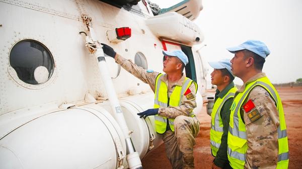 就这样,在第一次维和任务期间,王明征和周洁清联手排查出各类隐患30余起,用零差错撑起任务区的空中生命线。而第二次维和任务,他们又一同转战了局势更为复杂的东非阿卜耶伊地区。