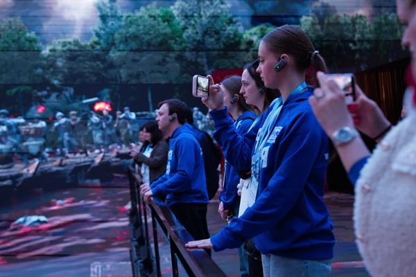 随着讲解员的脚步,俄罗斯青年们在“4D+6面”全景影院,沉浸式观看到血战湘江、强渡乌江、飞夺泸定桥等长征场景;在开国大典展陈前,他们在中央档案馆修复的开国大典彩色影像前驻足。一路走,一路看,俄罗斯青年们全方位、全过程、全景式地感受到中国共产党领导中国人民站起来、富起来、强起来的历史,也真切理解了“没有中国共产党,就没有新中国,就没有中华民族伟大复兴”“江山就是人民,人民就是江山”的深刻含义。