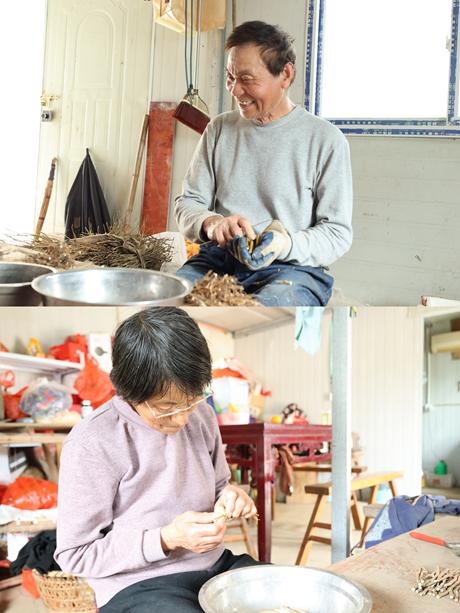 4月,正是种小桑苗的季节。阴天,陈达生和妻子谢新娥就在库房里嫁接小桑苗。谢新娥负责剪砧木,她把砧木握成一排,熟练地用剪刀在根部斜着剪出四五十度的斜面。陈达生负责削接穗,他从枝条上选一个饱满的芽,在芽的反面下刀,把枝条下端削成一个薄薄的楔形。再用手指捏开砧木剪口的皮层,将其撑成袋状,插入削好的接穗。