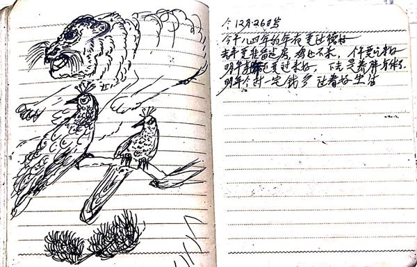 日记本上栩栩如生的白鹤、老虎、山峦、将军,是陈达生有美术天分的证明。陈梅娟回忆,小时候过年,父亲买来年历画,调好颜料,在老房子的墙上画老虎,“一根一根毛那样画,像工笔画一样”。后来,陈达生还在家里的墙上画了各式各样的公鸡,村民看了都说“画得真好”。