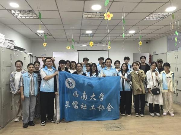 西南大学孔儒社工协会成立于2004年,是融公益性、学术性、实践性为一体的社工志愿者组织。协会以“秉仁爱、持公益、解忧困、泽社群”为服务理念,将儒家的“仁爱”思想与社会工作专业助人理念相结合,积极参与社会公共事业。协会开展“慧灵义卖”“噢啦公益”“善行100”等志愿服务活动。